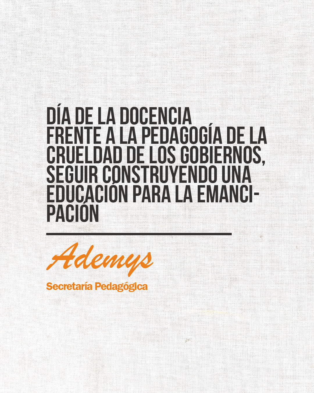 En este día, deseamos que el homenaje no pase sólo por la fecha en el calendario, sino por asumir que la escuela es el lugar donde además de estudiar, se construyen vínculos, se aprende en conjunto, se reconoce al otre, se escucha a todes, se protege, se cuida a cada une de nuestres estudiantes. Buscamos construir una Escuela pública realmente para todes, incluso para aquelles que están muy lejos de encajar con lo que se espera de un estudiante en la escuela, porque estamos para multiplicar las oportunidades y no para hacer una meritocracia educativa que expulse a los que no encajan. Queremos a los nuevos gauchos e indios que Sarmiento detestaba en las aulas. Una escuela donde se reconozca y valore la diversidad cultural condenando el colonialismo. Una escuela donde se condene el genocidio, de Palestina y de nuestros pueblos originarios. Donde se valore y defienda la humanidad.