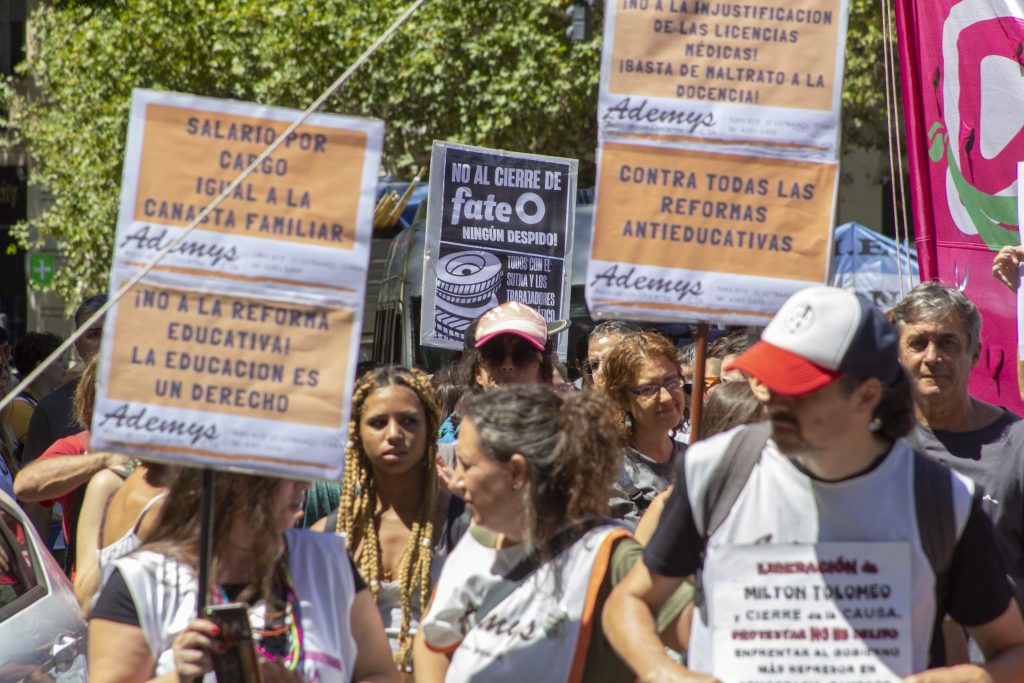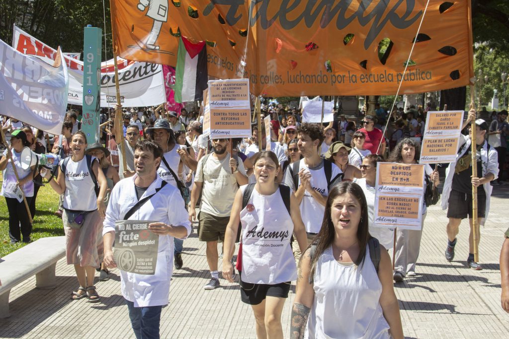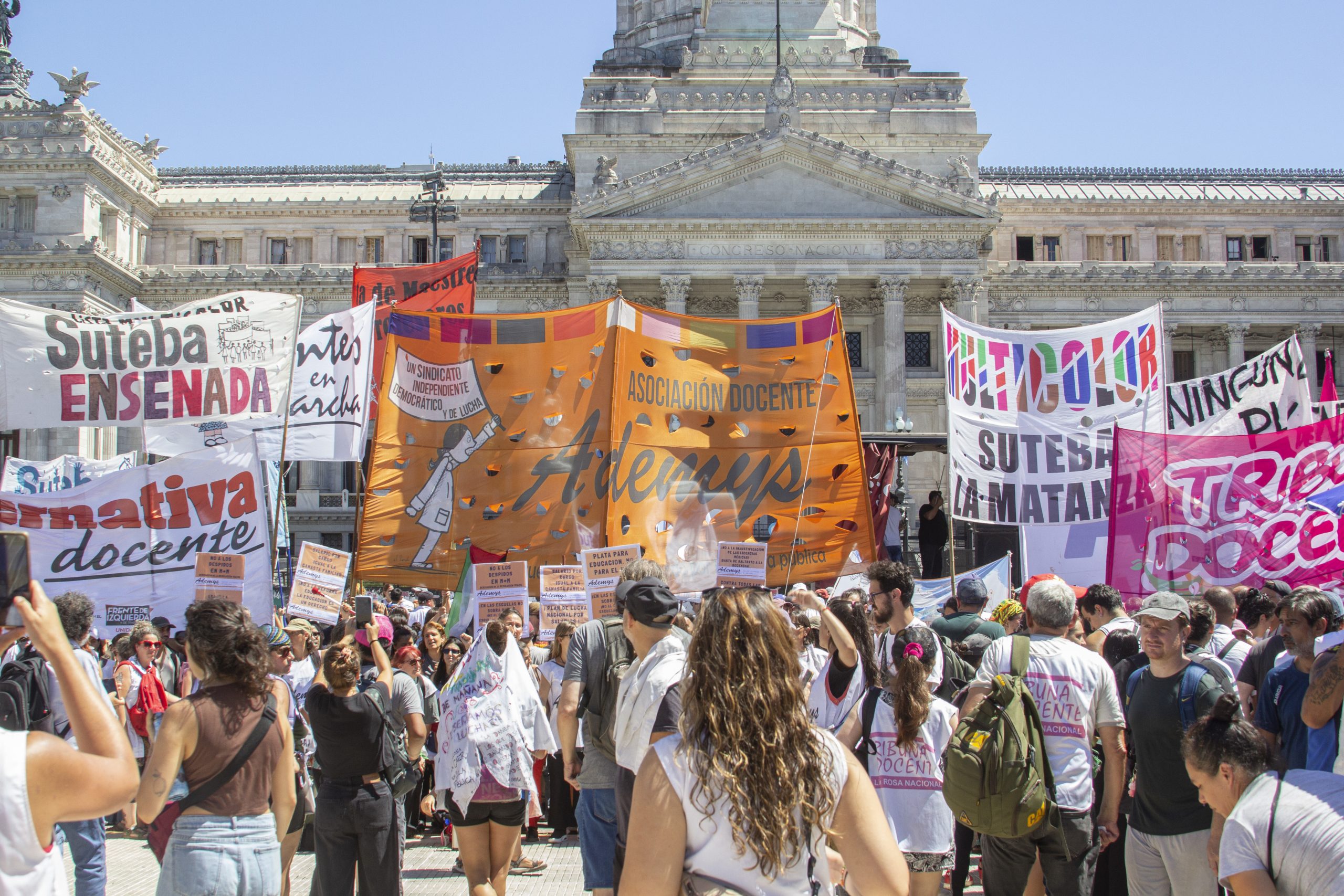El lunes 2 de marzo, Ademys movilizó en una columna independiente al Congreso Nacional en la jornada del paro nacional docente, en reclamo de las condiciones laborales de lxs docentes y exigiendo un plan de lucha para derrotar el ajuste de Milei, Macri y el FMI.