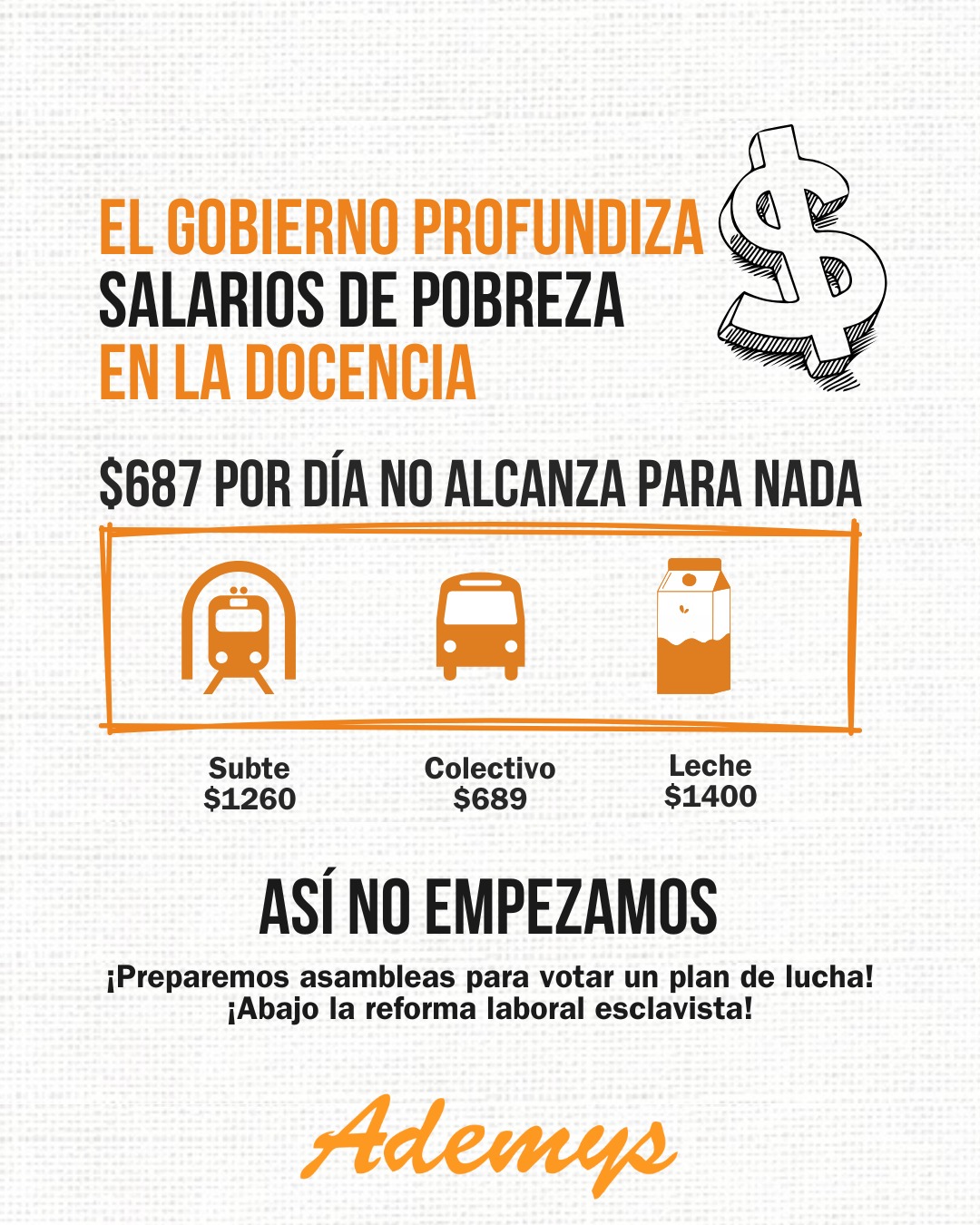 La docencia lleva perdido un 33% desde la aplicación del Plan Motosierra en Nación y Ciudad por eso este “aumento” de menos de 1000 por día no es incremento ni recuperación salarial sino la confirmación de una política de depreciación del salario y cristalización de la docencia en la pobreza.