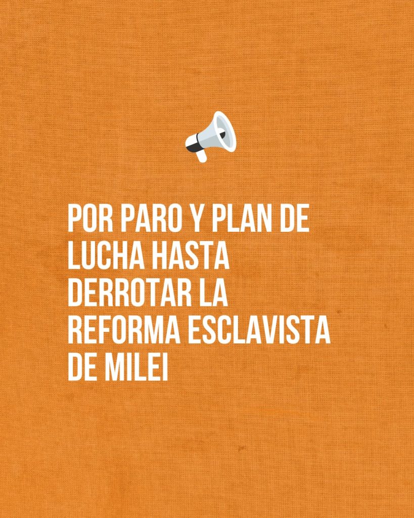 POR PARO Y PLAN DE LUCHA HASTA DERROTAR LA REFORMA ESCLAVISTA DE MILEI