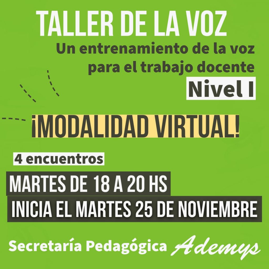 ▶️ Orientado a docentes de todos niveles, se brindarán herramientas para el cuidado, el entrenamiento y el uso expresivo/didáctico de la voz en el ámbito laboral.